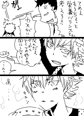 LayercakeボスとドカスのDV劇場 らくがきばかりですが まぁゆっくりしてけやPAGE | 17 18 19 20 21 22 23 24 25 26 27 | ADMIN | WRITE 2010.02.24 Wed 20:50:20 あなたに捧げる金メダル何回描いても同じ構図になる上、よし保存しよーの段階で同じだと気付くのは 子ザンスクにはそういう魔法があるからとしか思えない。 子ザンスクは何というか常に向かい合っていて欲しいというか、お互いを認識して確認しあう 大事な時期なんだよぉぉという主張の表れです。 子スクの顔を描き直したかったけどもうやめた… フィギュアすげ〜もう皆に金メダルでいいんじゃないかと思う 拍手ありがとうございます!つづきはおへんじです PR 2010.02.22 Mon 21:13:25 世界中を壊しても砕けないほどの愛が解説:うしろから肩に顔を乗せているおねだりモードもしくはかまってモードのスクアーロ氏(22) Spring has comeなカラーにて 最後に反転したからボスの顔の傷が...あががまいっか 今週のぷんじゃ様!プリーモがかっこよすぎるのはどうして?だってプリーモだから。 結局ボスの氷付けが溶けたのは、リングが一つになって真の力を発揮するため、 ビャクランサンの野望によるボンゴレの危機に備えての過程の一つだったということ? 読解力が乏しいためついていけない…ザンスクの事になるとめっちゃ行間読めるんですけど ボスは安定して顔かわいい。ディーノさんとスク先生はまた上の句と下の句を詠んだ... なんかもうビャクランサン見てらんないんですけど、ハイパーツナ様に 飛べない豚はただの豚とか言われてるし...あんな勢い良く出血するなんてもはやギャグなのか 気が早いけど、闘いが終わって武とスク先生がバイバイする感動のシーンを思い描きながら ツナ様の勝利を待つことにします。毎度感想じゃない。 オリンピックのニュースを見るたびに、スクたんの存在がボスにとって金メダルと 自分に言い聞かせています真剣です 拍手ありがとうございます^^つづきおへんじです 2010.02.21 Sun 12:08:42 あんたの平熱は38度7分か...っ!一週間って早いorz 昨晩16巻を読み直してて、武のエロカッチョメンっぷりに4回転しました。 この武は間違いなく月2〜3ペースでスク先生を抱いている...そんな顔をしている いえ嘘ですスク先生はボスのものですから^^失礼おばこきました^^ 指輪戦のラスト、掟ごとぶっ壊したはずだぁ!のスク(22)は最強に健気ですよね ほんとにボスの事分かってるのはスクたんだけだ!ボスもとっくにそうだと気づいてるのに 素直に愛せない、お前らもっと器用に生きとけよ...っ...!そんな絶愛なザンスクもいいと思いました youtubeで南條晃司の曲を聴いている場合ではないと思うお絵かきしよう... 拍手ありがとうございます!続きはお返事です 2010.02.15 Mon 21:18:45 雨は気まぐれ それは心も同じ今週のぷんじゃ様!ディーノさんにお願い隣のスク先生が隠れないように 吹き出しの位置を調整して下さいでござる。 ビャクランサンが指輪戦のボスと似たぶはっ!モードに…フルボッコフラグでござるな それにしてもツナ様はいい事言うなぁ~キュンとしたでござる あかん…雨月さんが素敵すぎてその他がか す む … きっと雨月さんは、他の守護者から陰でござるって呼ばれているんだ… プリーモ「あ、ござ…雨月はるばる来てくれてサンキューナッツ^^」「今ござるって…?」 「言ってないよ!そんな事より雨月、人斬り抜刀斎って知ってる?」「え…?拙者とは関係ないでござるよ!?」 ギャグマンガ日和のツタンカーメン部なノリで 拍手ありがとうございます!続きはお返事です^^ |