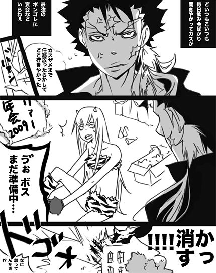 LayercakeボスとドカスのDV劇場 らくがきばかりですが まぁゆっくりしてけやPAGE | 22 23 24 25 26 27 28 29 30 31 32 | ADMIN | WRITE 2009.12.31 Thu 22:03:34 年末年始のご挨拶^^2009年は無双からリボーンな年でした。山ヒバ萌えの友の熱心な勧誘により、山ヒバを横目に めでたくザンスクに着地 あとはもう萌えに飢えていた日々とはおさらば… そうして開設した好きなまま描き散らしてるだけの当ブログを贔屓にしていただき、ありがとうございます! こんな僻地にリンクして下さっているのを見つけると有り難すぎて申し訳なくなる… 疲れて心が折れそうな時、ザンスクが元気をくれますがプラスαが皆様のアクセスやメッセージです^^ 2010年も引き続きよろしくお願いします! 元旦は温泉旅館なのじゃ 拍手ありがとうございます^^^^^^ PR 2009.12.30 Wed 22:25:17 Since you left we still can't sleep at night昨日半日でストックしたらくがきで食いつなぐ…(あまりない) エルレのMissingを勝手にザンスクソングにエントリーして聞きながら、 シリアスメルヘンなザンスクを描こうとしました。(駄目でした) 明日もう大晦日っすか!実家で飯食べて笑ってはいけないを見ます 笑ってはいけないヴァリアーのアジトな初夢が見れるといいです。沢田獄寺山本アウトー的な 雲雀たんは山崎タイプで仲間を笑わせてしまうんだと思います お笑いといえば、ボスって笑いのハードル低いんじゃないだろうか... ヤホーってぶはっヤフーだろおいカスザメ何で笑ってねぇんだシケた野郎だな (つまらねーぜぇ…)byスク先生 そんな平和なザンスクの大晦日もいい… いまさら阿部サダヲのなくもんか観てきましたよ(反転) 瑛太きゃわあぁぁぁ 瑛太=スクたんとして、ザンスク前提最後スクたんをシアワセにしたのは ディーノさんでした という見方をしたらたいそう萌えました 「オレを...見捨てないでくれよ...」とボスに言わせたい。スクたんでもいい。 つまりディノスクでした(参考にしないでください) 拍手ありがとうございます^^つづきおへんじです^^ 2009.12.29 Tue 19:07:15 TIGAR BIKINIうるさいのか 焼き肉なのか どちらのラムちゃん by SMの曲より 来年は寅年^^細かいとこは見んといて... 拍手ありがとうございます!つづきおへんじです そして55555hitありがとうございます! いきなりリクエストを要求するサプライズなカウンターでありますがよろしければ...^^ 2009.12.28 Mon 20:22:31 ボス大暴走こんなでっかいケーキ2人だと無理ですー何言ってんだてめーならペロリだろ ペケでこんなネタがあった(うろおぼえ) とりあえずらくがきが過ぎる 仕事オワタ!実際は終わってはいないけどそういう事にしておいた... この未処理の書類ども、てめーらは来年かっ消してやると言いつつひきだしに詰め込んでおいた... 最近何故か歳を聞かれることが多いのでこれまたかっ消したくなります。 あ〜やっぱりそのぐらいか〜 なのか よく見ると実はあんまり若くないよね なのか みな自分の勘が鈍っていないか確かめたいのだろうか...答えた後はちゃんとフォローしてよね! で、今日も聞かれました 拍手ありがとうございます! もうすぐ冬コミとかいう噂...今回はお宝ゲットできるといいです。 2009.12.27 Sun 23:59:39 あいつのボスは体育会系近頃のボスは麗しすぎてたいへんけしからんので受けさせてみる 誰ってベルたんじゃなくて10年後ツナ様だと思って見ていただけるとありがてぇ... いつもスクアーロにしてる事だろ?とか言いつつひんむいて欲しいです ボスは対スク先生以外は総受けだという個人的な意見 それにしても右手が言う事きいてくれないorz 拍手ありがとうございます^^つづきおへんじですー |