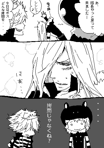 LayercakeボスとドカスのDV劇場 らくがきばかりですが まぁゆっくりしてけやPAGE | 51 52 53 54 55 56 57 58 59 60 | ADMIN | WRITE 2009.05.23 Sat 22:39:41 この勝負最後まで俺のバカ弟子を信じぬいたお前の勝ちだ!!!この様子を、ディーノさんはでかい設備と腕のいいカメラマンを使って ハイビジョン録画してると思う。 勝手なイメージで、家庭教師スク≒比古清十郎 はやく武の出番がこないかなぁぁ! るろうに剣心占い きー坊さんは【相楽左之助 】です! ってワオ^^ 拍手ありがとうございますー 2009.05.22 Fri 23:45:41 VJのボスは若返りカコイイ昨日の続きですが、こういうことですねわかります あぁ...ベルたんは想像で描いた...きっと何かが違う。 拍手ありがとうです^^ 2009.05.21 Thu 20:43:05 絵は24歳うちのPCはmacちゃんなのでウイルスは大丈夫そう^^ ブログは大丈夫なんですよね...おおこわい と こ ろ で ネ タ バ レ ま す が VJなんですかあのボスのセリフはぁ! 試したい 技 と書いて体位と読んだのは私だけですかすいません疲れています 今回はマジ拷問なのか拷問という名目のラブラブチュッチュなのか悶々としながら 部屋へ向かうスクアーロの後ろ姿を受信しました。確率は80%&20%^^ 拍手ありがとうございます^^ |